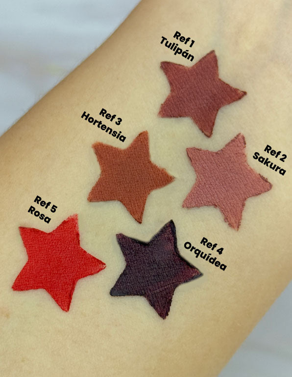 El lápiz de labios Kiaka viene en 5 tonos irresistibles, con textura suave y sacapuntas incluido para un look preciso.