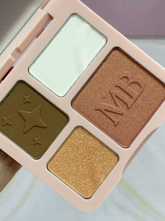 Conoce la paleta de rostro más versátil del mercado, con un tamaño único que puedes llevar a todas partes, este producto cambiara tu rutina de maquillaje diario, ya que tendrás 4 productos en 1, rubor luminoso, iluminador, bronzer mate, perfecto para contornear y polvo traslúcido sin color, para sellar tu maquillaje.