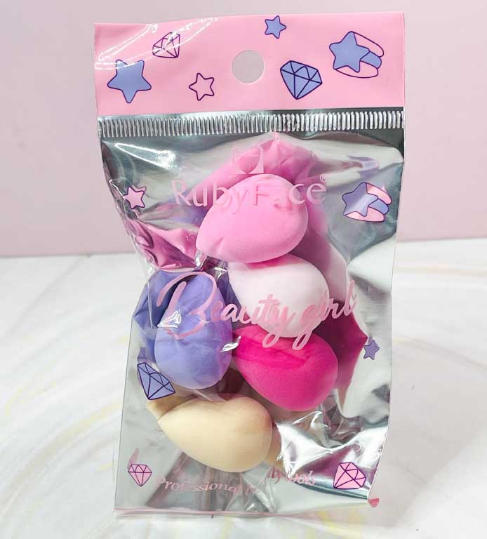 Paquete de 5 mini esponjas Ruby Face, perfectas para difuminar tu maquillaje con precisión y un acabado natural.