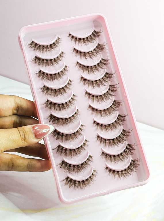 Pestañas Chocolate sin banda, perfectas para un look natural en ojos claros, cómodas y con acabado ultra realista.