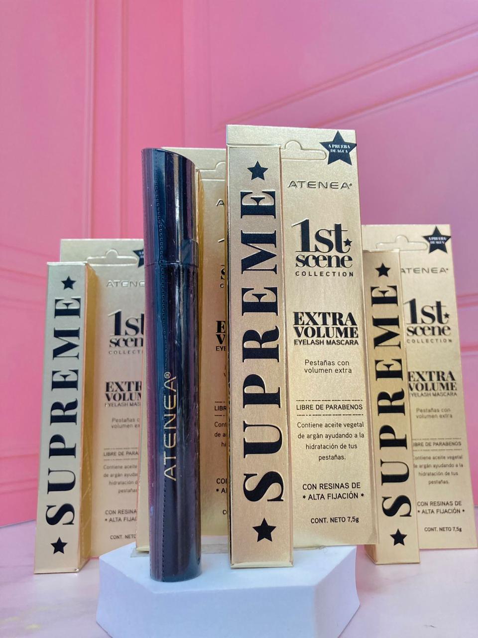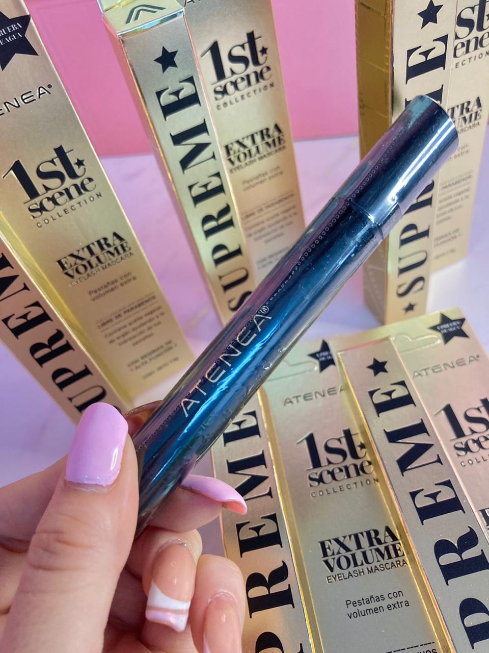 La pestañina SUPREME de la colección 1ST SCENE by Atenea es a prueba de agua y de fácil remoción, gracias a sus aceites esenciales que cuidan y protegen tus pestañas. Además, cuenta con resinas de alta fijación y es libre de parabenos.